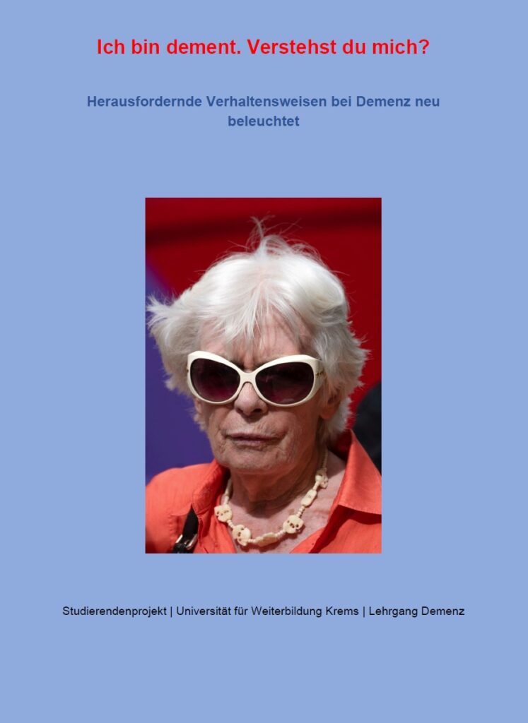 Im Rahmen der Lehrveranstaltung „Kommunikationsprinzipien bei Menschen mit Demenz“ im Lehrgang Demenz der Universität für Weiterbildung Krems ist gemeinsam mit Studierenden eine Broschüre zum Thema herausforderndes Verhalten bei Demenz (BPSD – Behavioural and Psychological Symptoms of Dementia) entstanden.